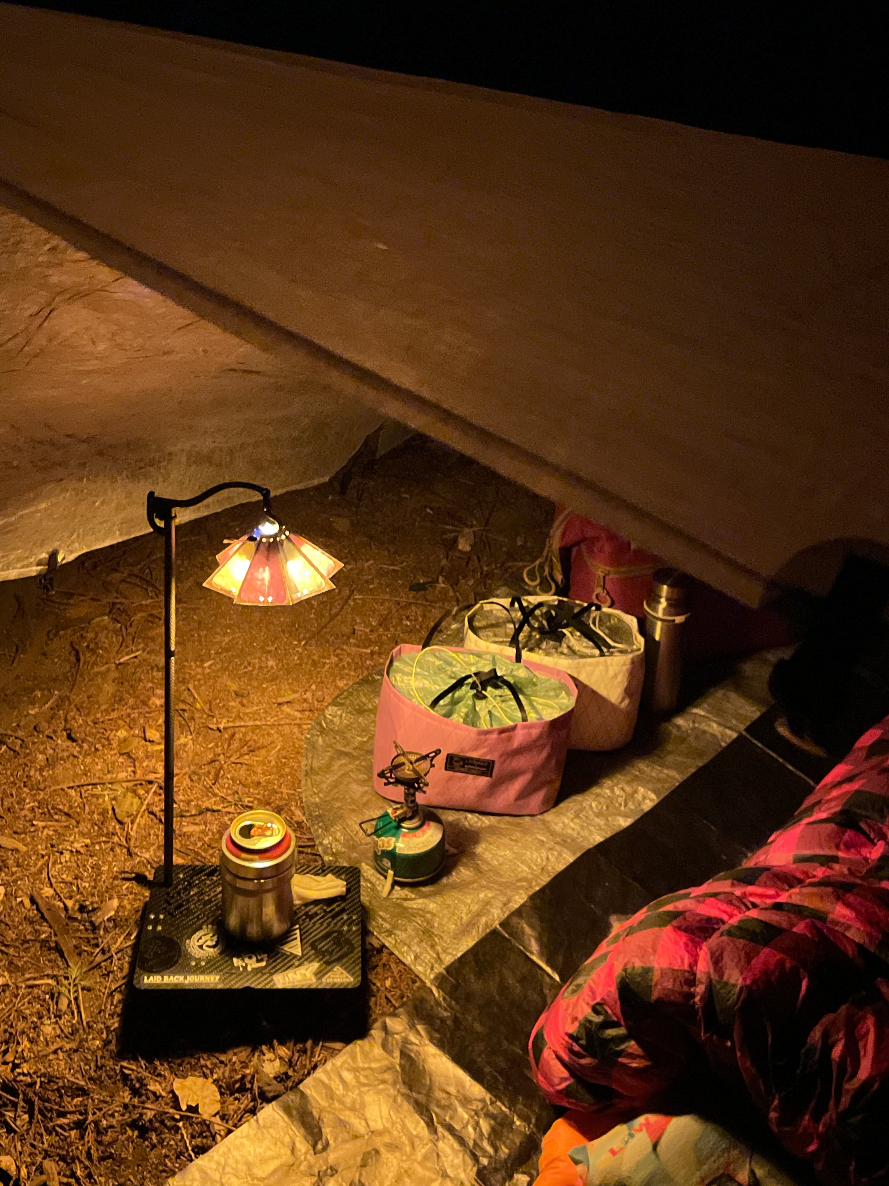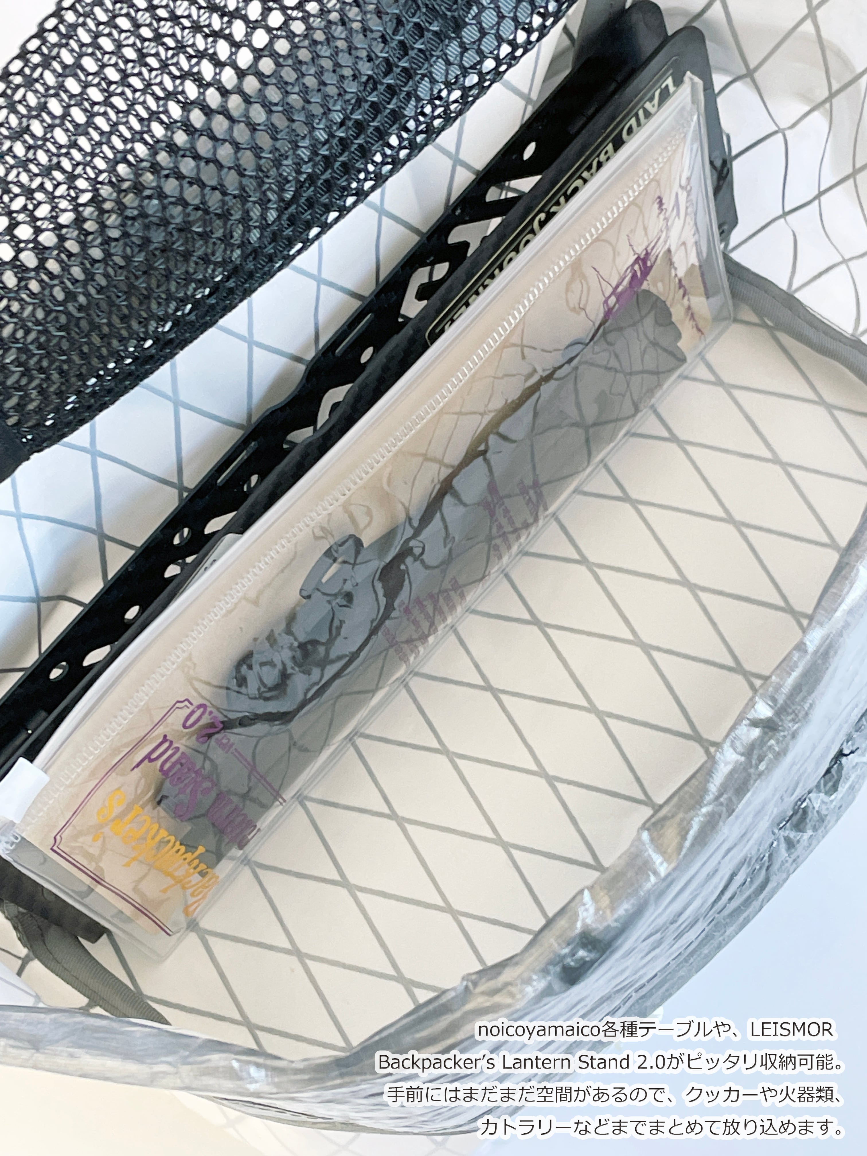 夜のテント内で使用する道具の収納にもオススメ。
