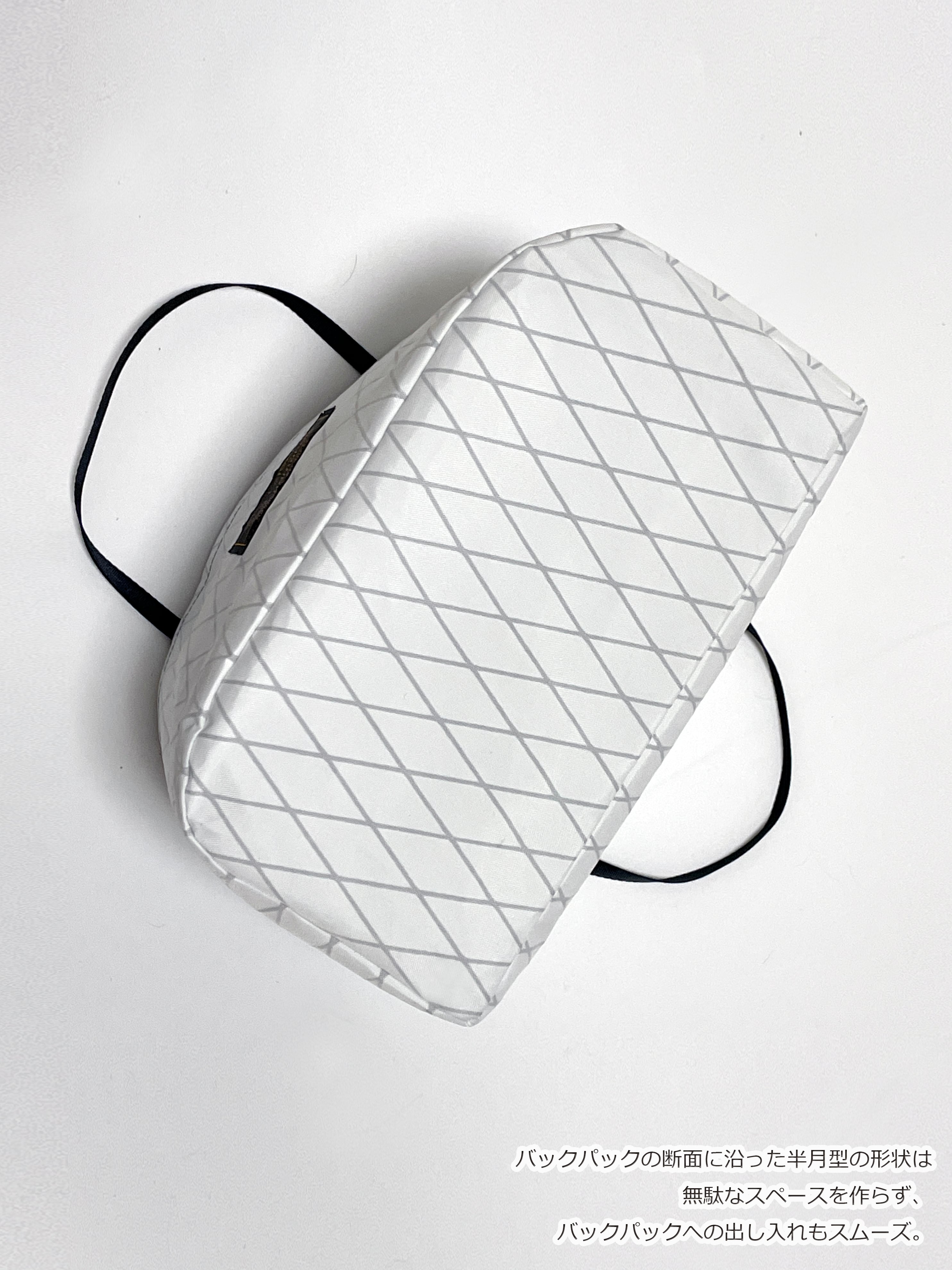 ✅バックパックの断面に沿った半月型の形状で、"無駄なスペースを作らない"